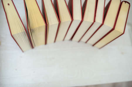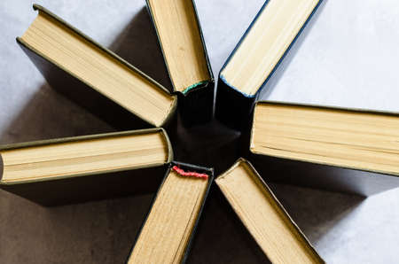 Close-up of several books facing each other. Learning concept.