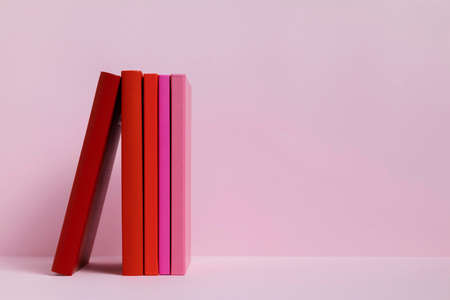 colorful books with pink background