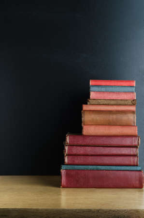 Stack of old book on table.Concept : work and learn from home.