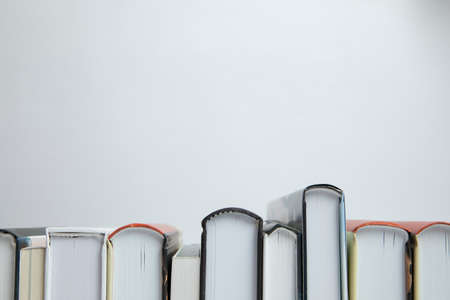 Many books on light background, closeup