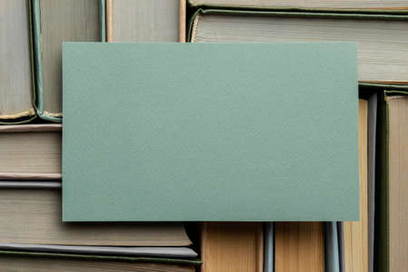 A large stack of different books on the surface. With a place for an inscription. The concept of education.