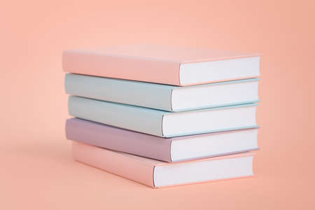 Illustration of pastel colored books piled up, 3D rendering