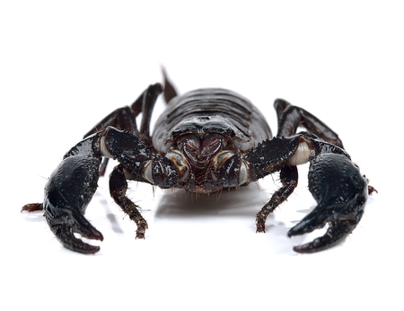 scorpion on white background. Giant forest scorpion species found in tropical and subtropical areas in Asia.