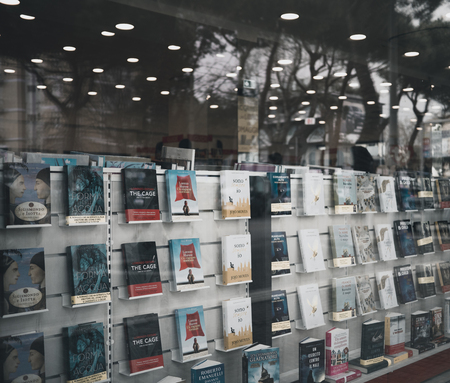 Bucharest, Romania – February 07, 2016: Bookstore window in Bucharest city center.