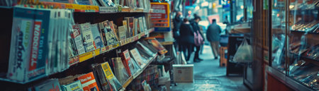 An AI-generated illustration of A bustling bookstore filled with a wide selection of books and magazines