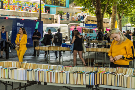 London. June 2018. A view of the second hand book stalls along the south bank in London