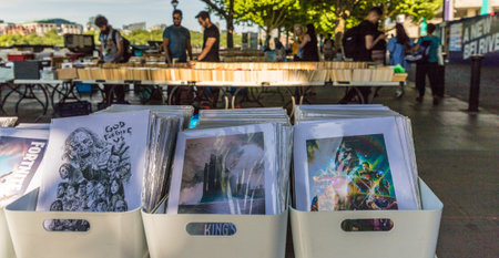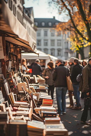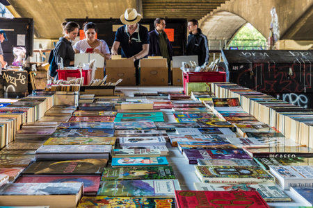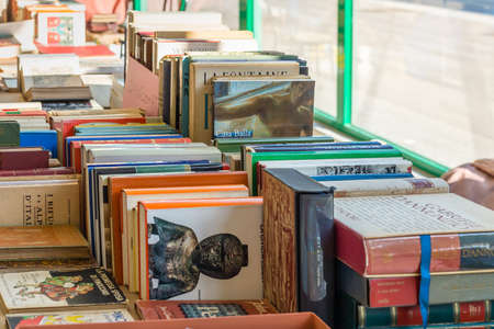 Budapest / Hungary - October 20, 2018: Street stall with second-hand books on sale in Budapest, Hungary