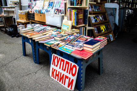 Petrivka book market located in Kyiv, Ukraine. Famous for its great range of books. Sprawling open air market with stalls selling secondhand books. Despite the war and the fact that there are no tourists, this place remains very popular for locals who vis