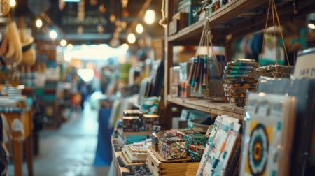 A bustling marketplace filled with handmade crafts and merchandise from local artists promoting the importance of supporting small businesses