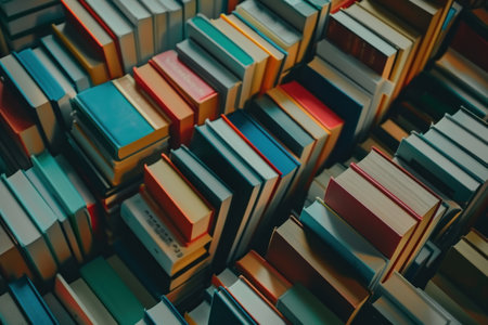 A conceptual photograph featuring stacks of books arranged in a visually appealing pattern, emphasizing their shapes and colors. --ar 3:2 --v 6 Job ID: 2c8cd91e-2502-482e-bf71-2b84e8e31b32