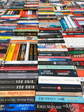 BUCHAREST, ROMANIA - JANUARY 22, 2016: English Books For Sale On Library Shelf.