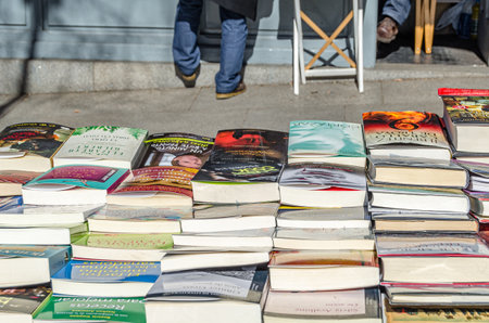 BARCELONA, SPAIN - APRIL 23, 2015: Books on street stalls in Barcelona.