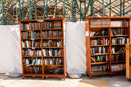 Jerusalem, Israel - September 11, 2011: Shelves with Holy Books at the Western Wall in Jerusalem