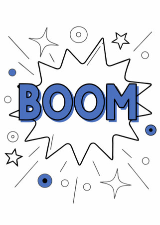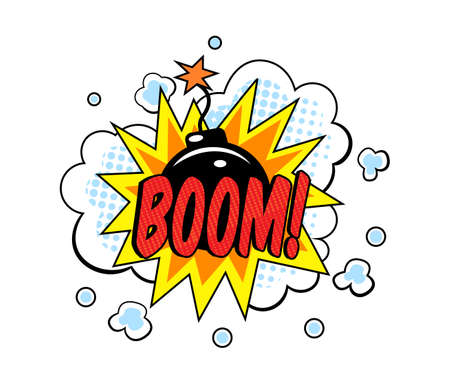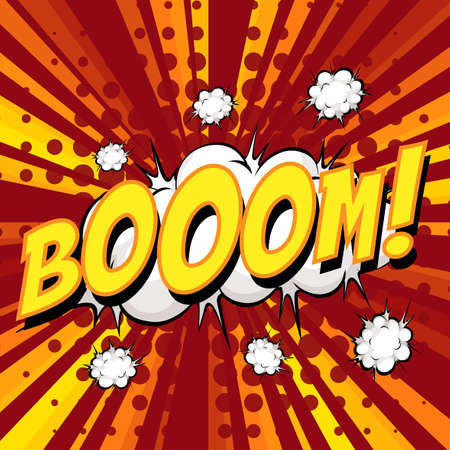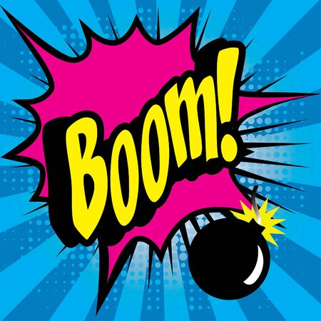 BOOM wording comic speech bubble on burst illustration