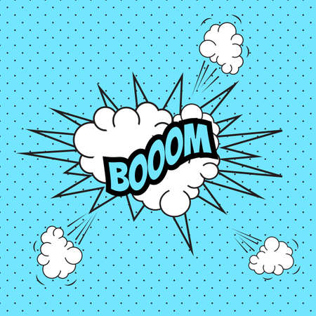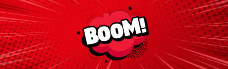 Comic boom text sound effect. Popart bubble speech cartoon background. Pop art boom effect vector illustration
