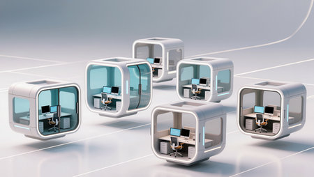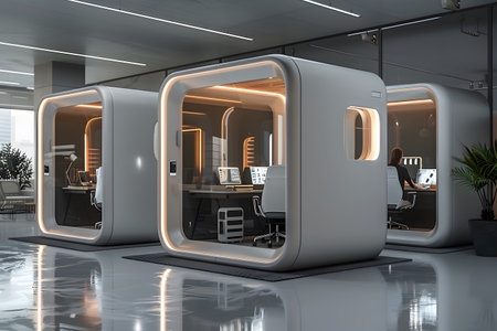 A glimpse into a modern workspace featuring innovative office pods designed for productivity.