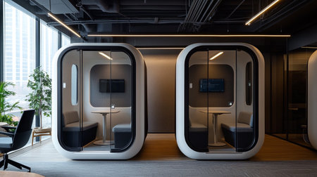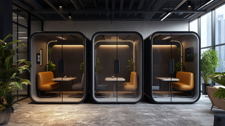 Stylish and functional office booths providing a cozy and private space for employees to collaborate, brainstorm, or take breaks