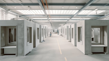 Factory, production, shop for the production of foam concrete, new production areas, output, work at the enterprise. Empty production stops.