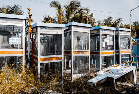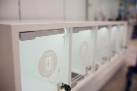 SINGAPORE - CIRCA APRIL, 2019: pay phones at Singapore Changi Airport.