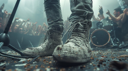 Feet of a singer at a concert, detail of a rock concert, party and music