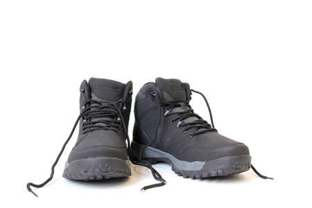 hiking shoes in front of white background