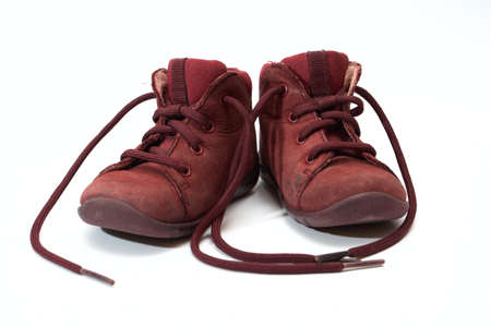 children's old vinous shoes isolated on a white