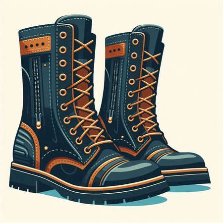 Stylized vector illustration of a pair of black leather boots.