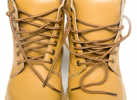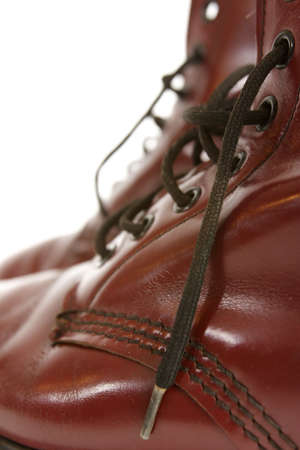 Close up shoelace of engineering boot on white