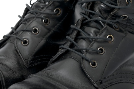 Closed up Black military leather boots for background