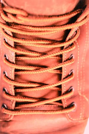 Close up of detail shoelaces on the shoes, macro