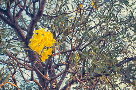 Bright cluster of yellow flowering tree of Tabebuia Aurea