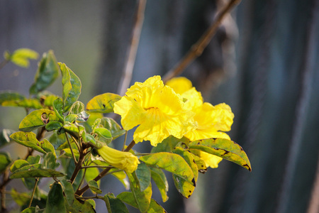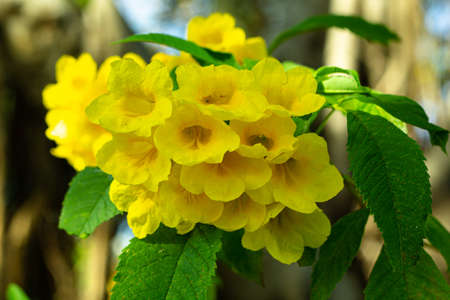 Tecoma stans, Yellow bell, Yellow elder flowers with blur background,