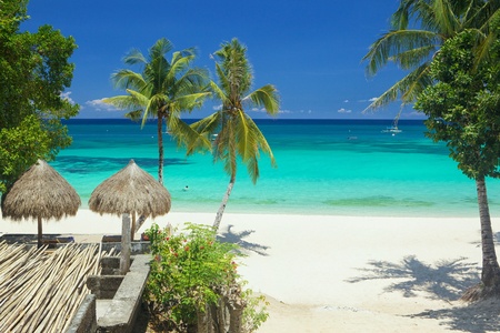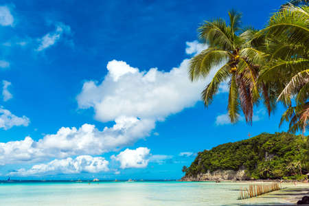 Palm trees on a beautiful, quiet tropical sandy beach on a tropical island (White Beach, Boracay)