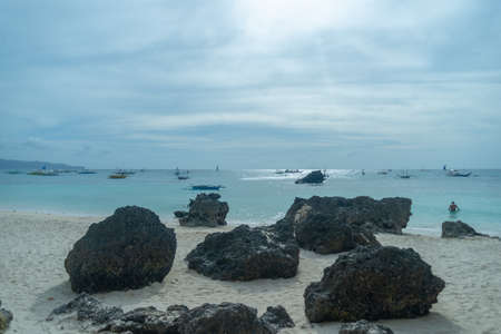 BORACAY, PHILIPPINES - FEBRUARY 28, 2018: Willy's rock on the beach. Copy space for text