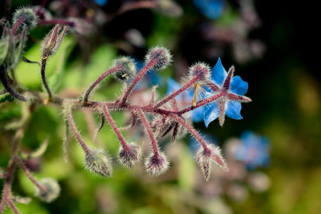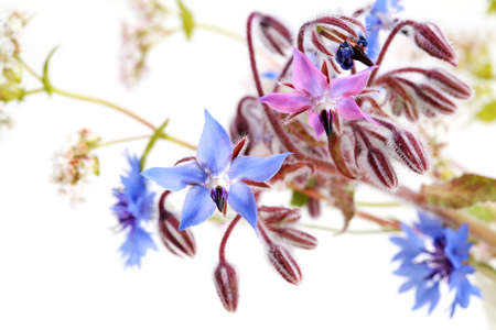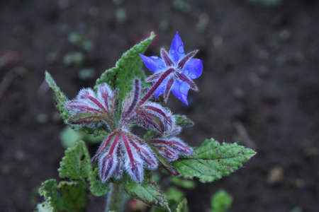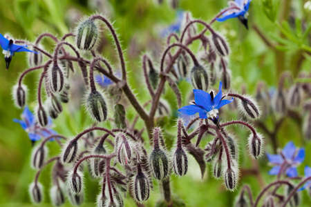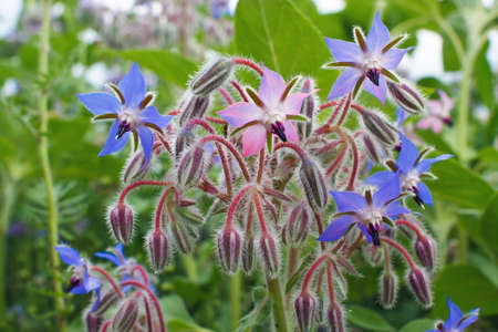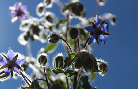Borage flowers. Boraginaceae annual herb. The whole is covered with white hair and blooms star-shaped flowers. Flowers are edible and medicinal, and as a dye for painters