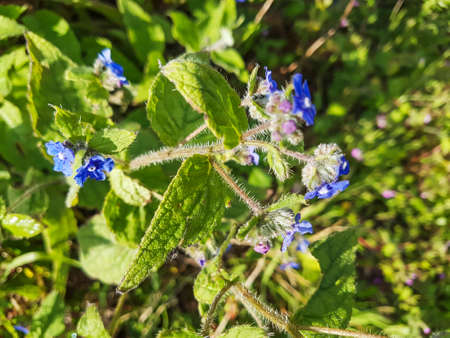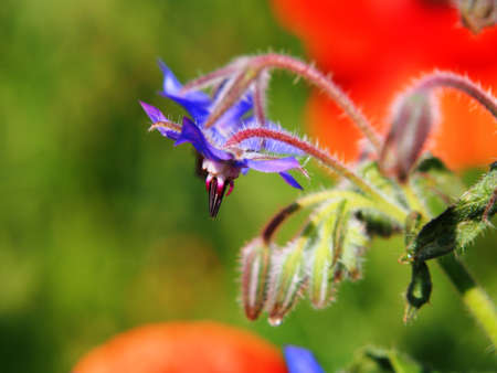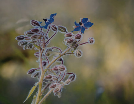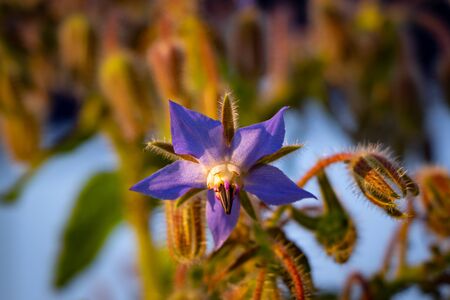 Wild blossom of borago officinalis edible medicinal plant on meadow in sunlights