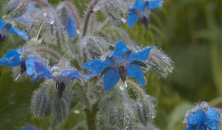 Edible flower and decoration for chef's dishes called Borage.Starflowers with raindrops.