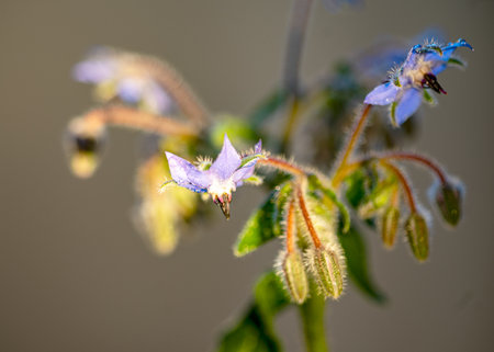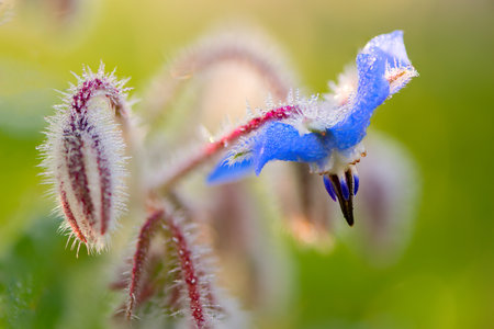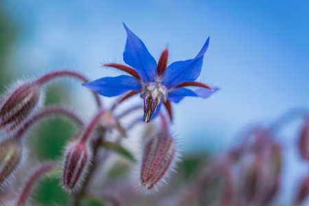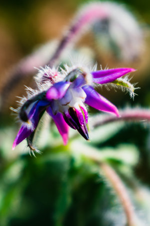 borago. colorful macro photography of a plant. blurred background with highlights and bokeh. the beauty of nature. wildlife. borago. herbal. Borago officinalis. Boraginaceae.