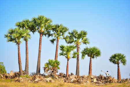 Toddy or sugar palm trees in the field ,thailand