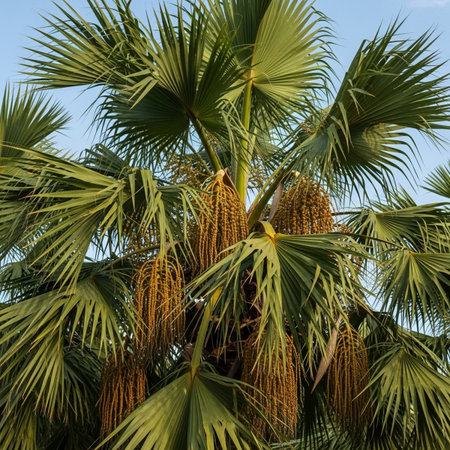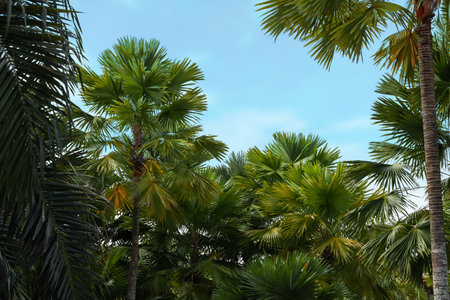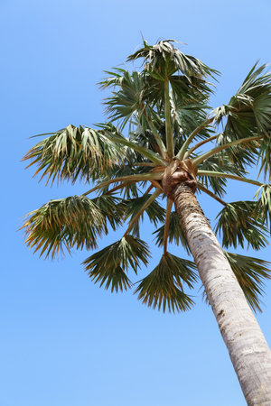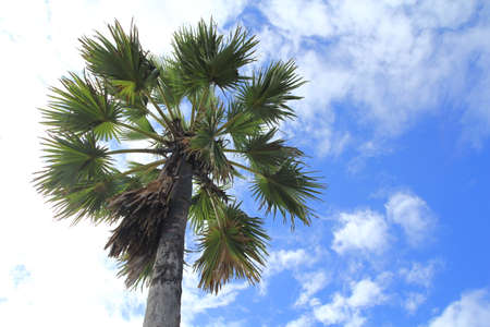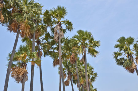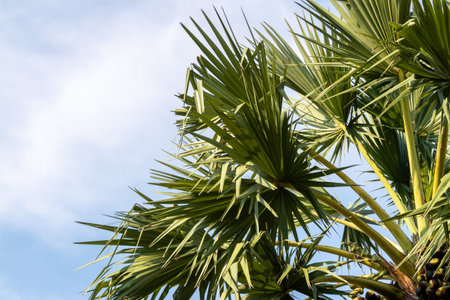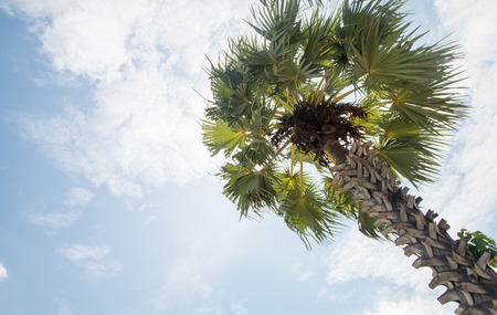 Sugar palm tree on sunny day.