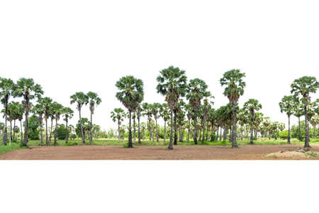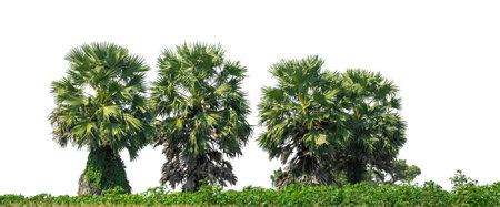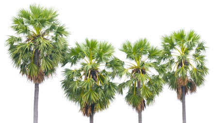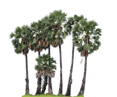 A group of sugar palm tree on a white background, High resolution tropical trees.