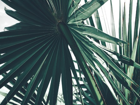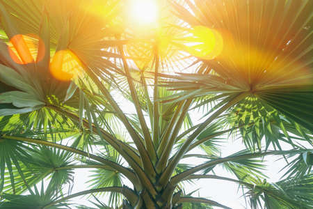 Palm tree in the morning light. Natural background. Vintage tone.