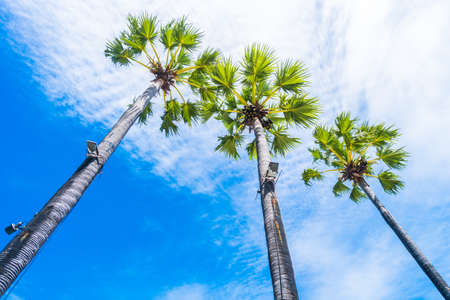Plam trees beautiful nature on the beach with blue sky background