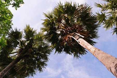 Sugar palm and the blue sky of Thailand.