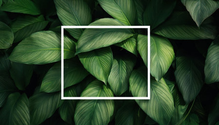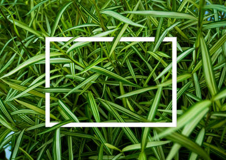 Creative layout green leaves with white square frame.