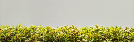 Green plant botanical natural background. Fresh herbal backdrop with copy space. Long wide banner