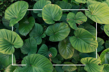 Frame tropical leaf texture green leaves Background, foliage nature