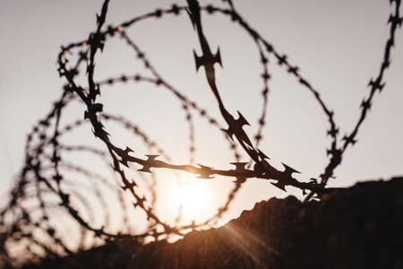 Steel twisted barbed wire. The concept of freedom and a better life on the other side.