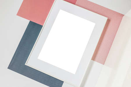 Abstract paper minimal background with white frame. Minimal composition with empty picture frame.