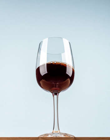 Glass of red wine on gray textured background